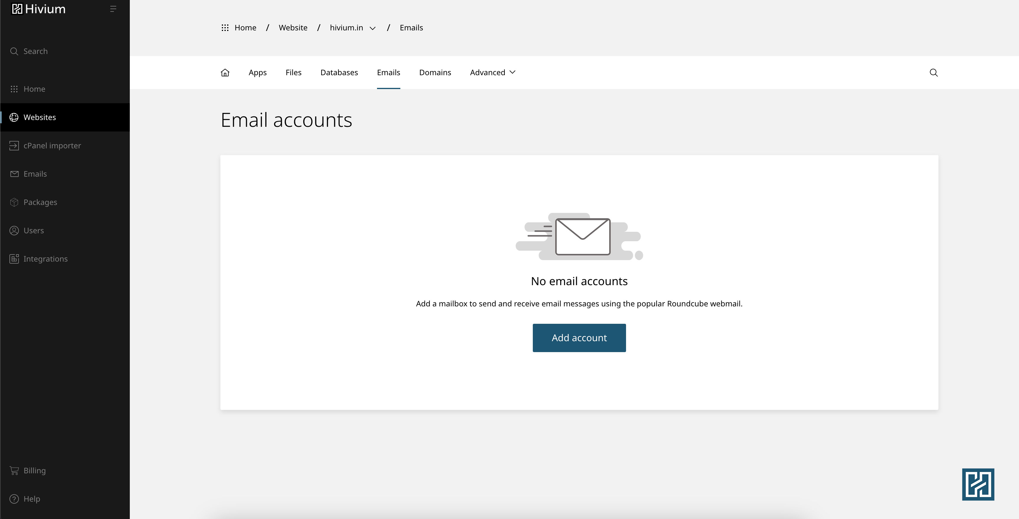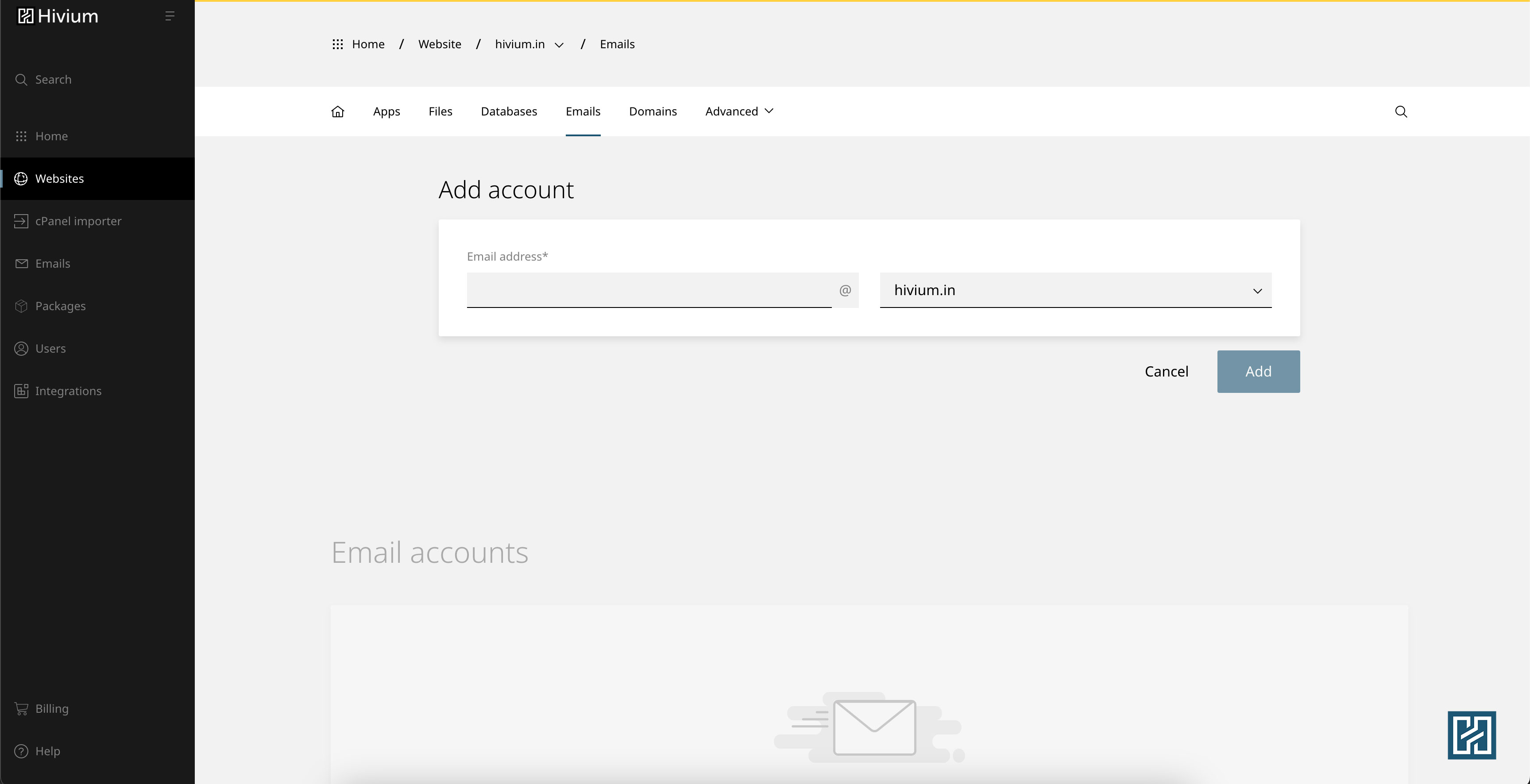 1. Go to Websites, and select the website for which you need to create the email account.