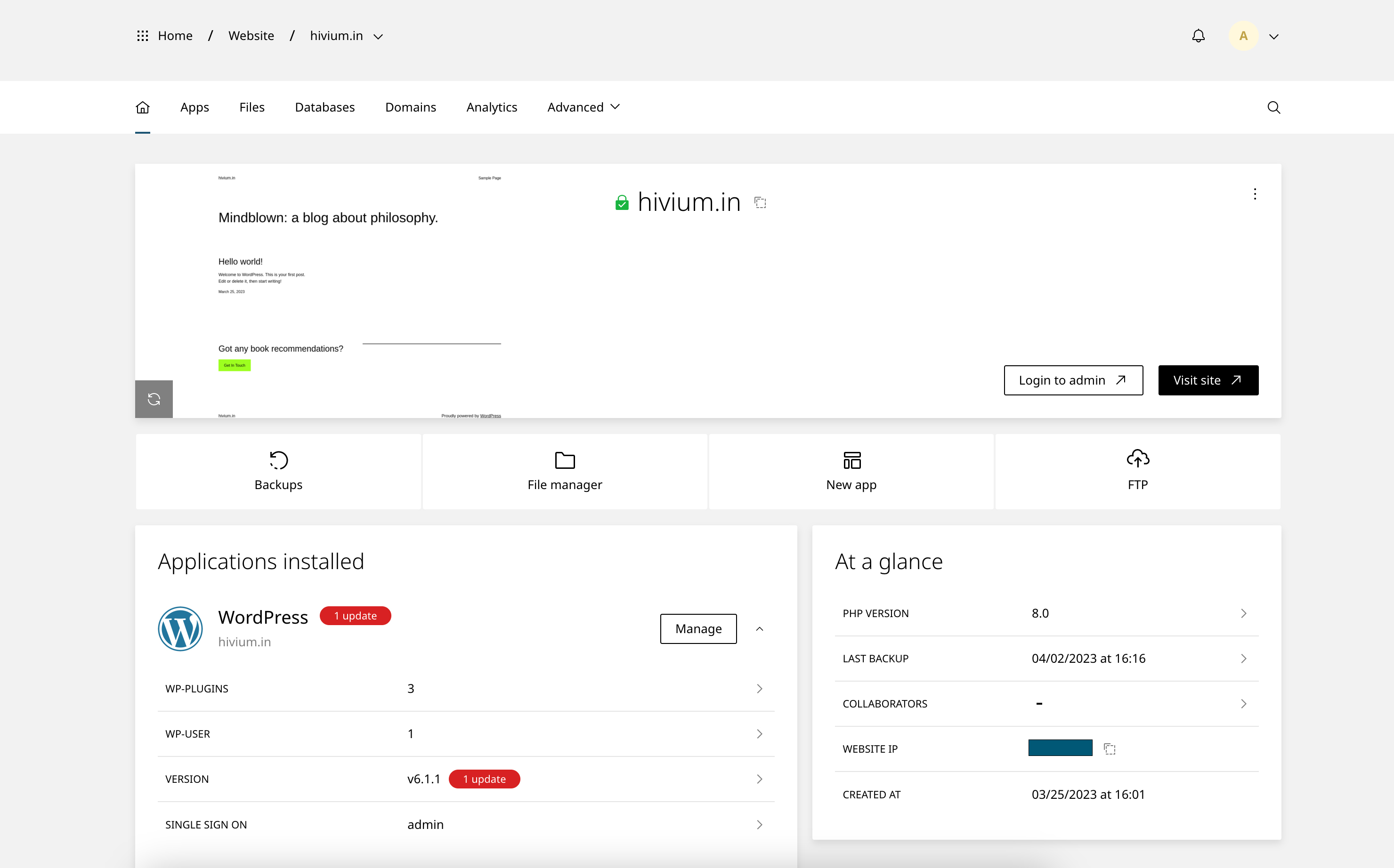 6. Once the system has installed WordPress, you will be redirected to a screen like the one below.