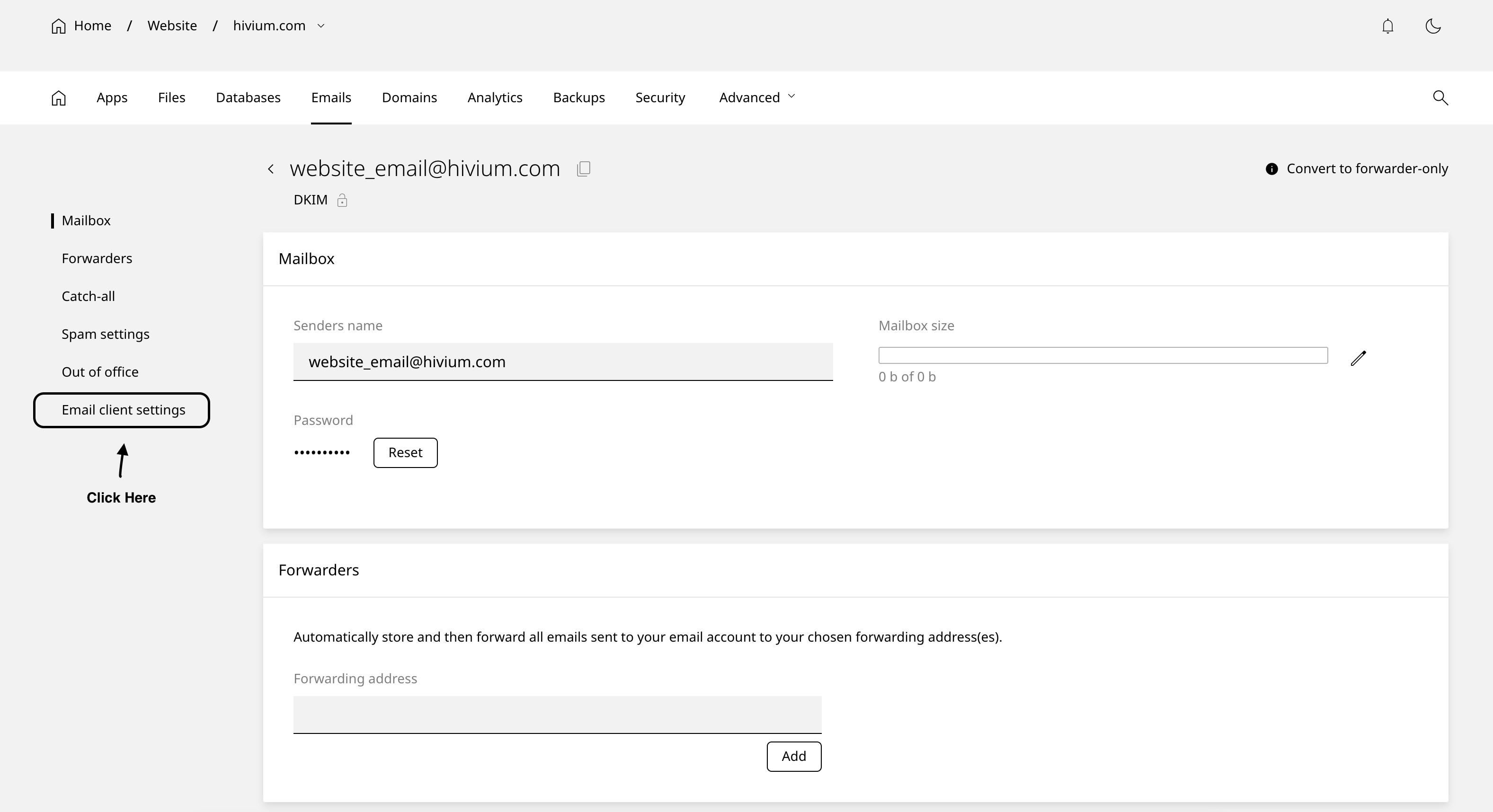 3. Now click on the Email Client Settings in the left menu option as shown in the screenshot below.