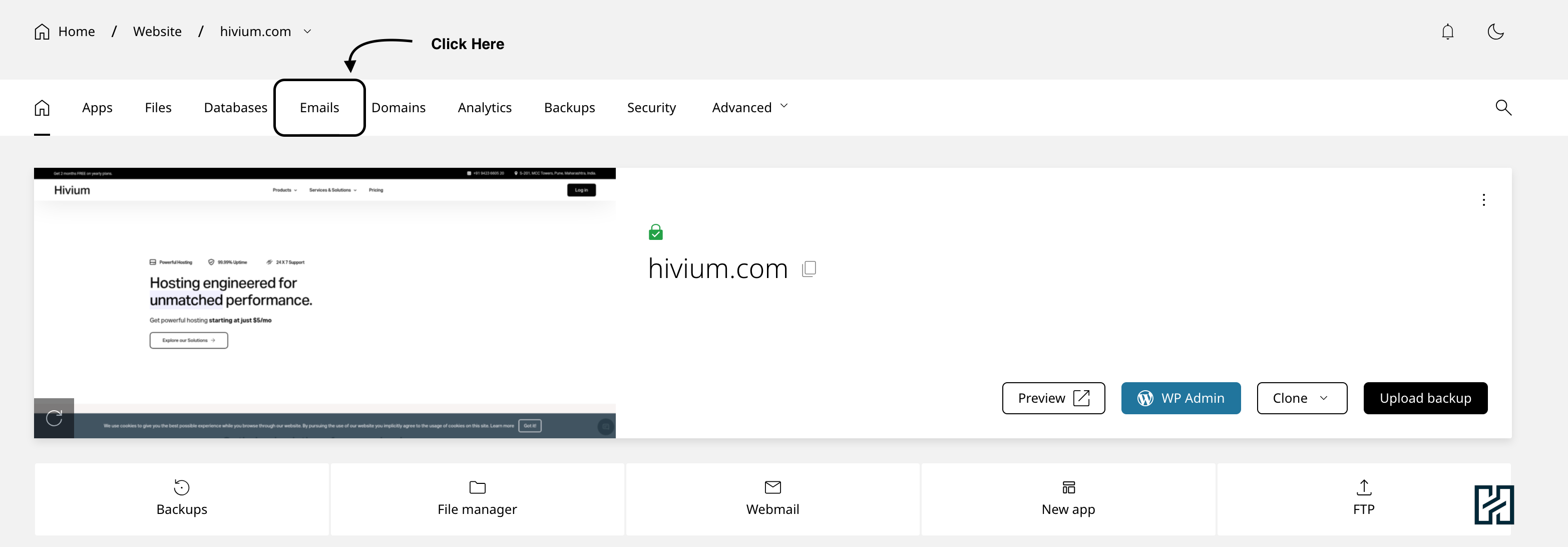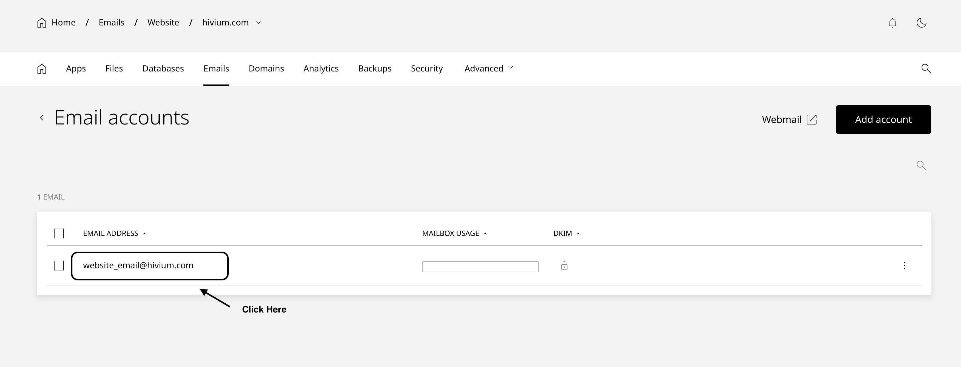 1. Go to the Websites, and then the Emails tab as shown below.